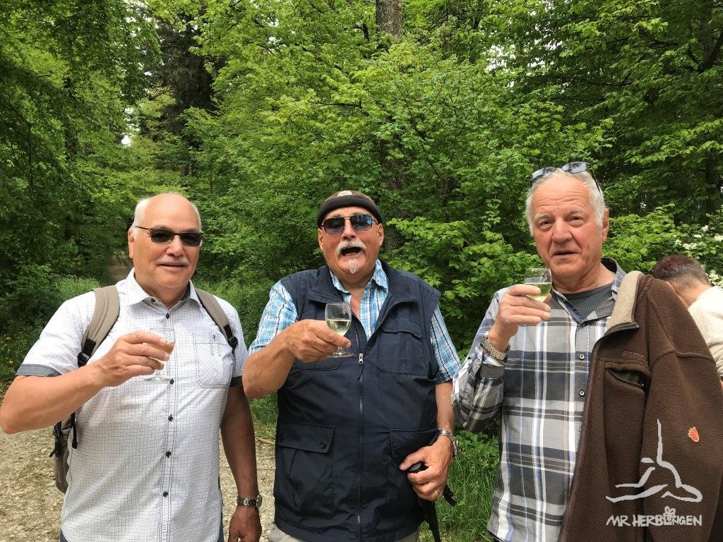 Die Mai Wanderung der Turnveteranen startete an der Endstation Sommerwies. Schon bald führte uns der Weg, welchen Bruno Christen für uns ausgesucht hatte, steil bergauf zum Griesbachhof und an der Ölmühle vorbei. Weiter ging es zum Mittelpunkt des Kantons Schaffhausens. Kurz danach lud uns Jean Leuba, anlässlich seines baldigen 70. Geburtstags zu einem Apéro ein, welche Seine Tochter Madeleine und sein Enkel Paul für uns bereitstellten. Nach dem feinen Weisswein wanderten wir weiter ins Restaurant Eschheimertal zu einem währschaften z’Vieri. Der Rückweg führte in kleineren Gruppen (da einige noch etwas länger bleiben wollten) via Sternwarte zurück zur Breite. Besten Dank an Bruno für die Wanderleitung und an Gusti für die Fotos.