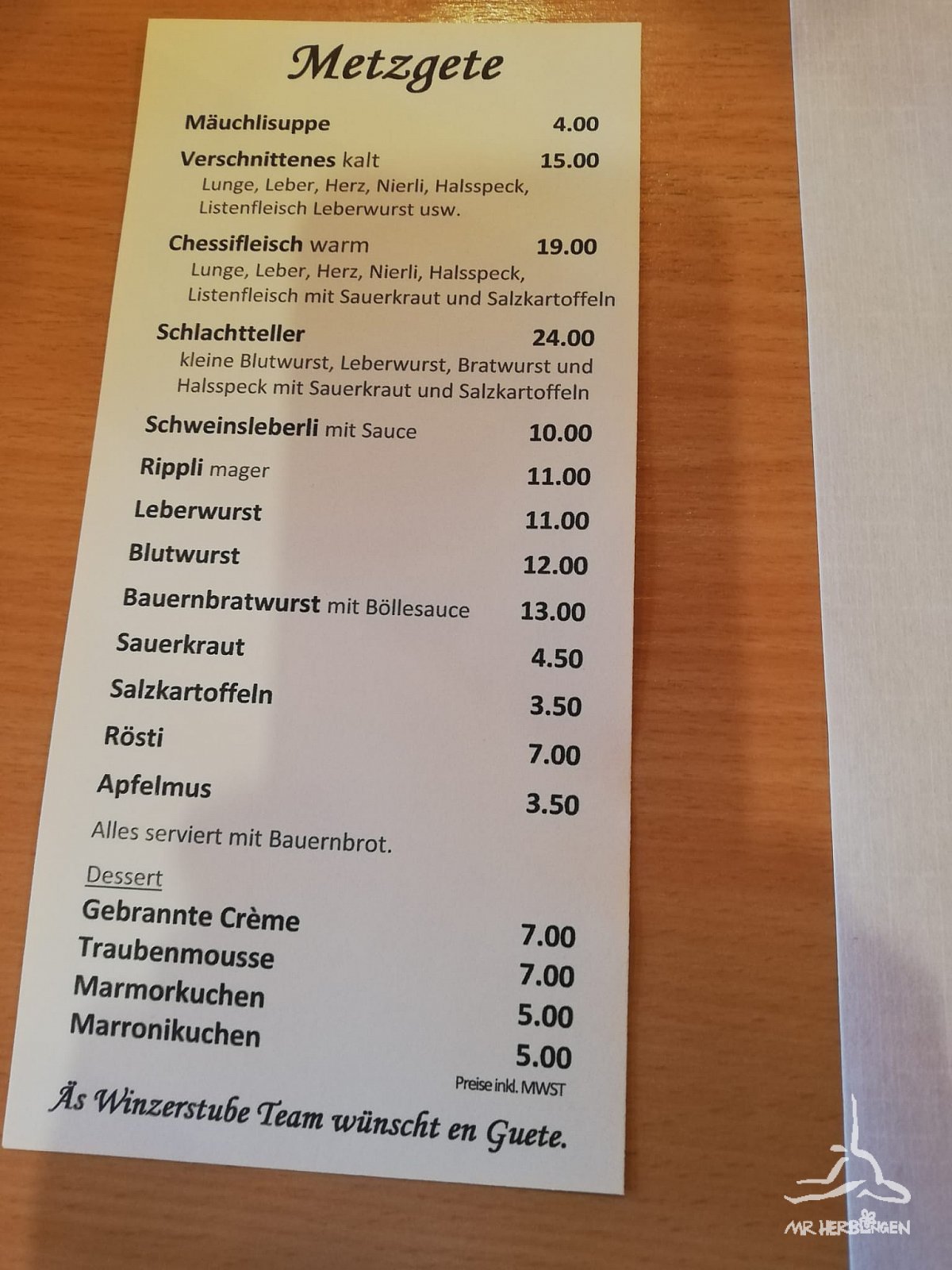 Dort angekommen erwartete die wackeren Wanderer in Kellers Winzerstube eine währschafte Metzgete.
